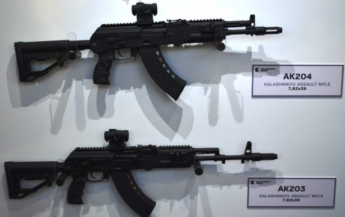 This rifle is the 5.56×45mm NATO version of the AK-200.
