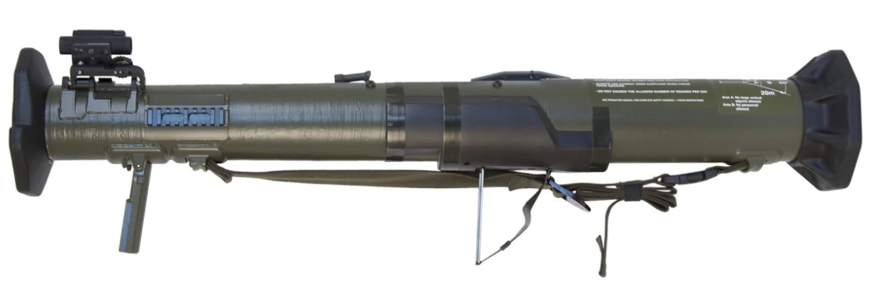 "Reduced sensitivity." Slightly less effective than the HEAT variant but uses insensitive explosives for a decreased chance of accidental detonation. Shipped with iron sights.