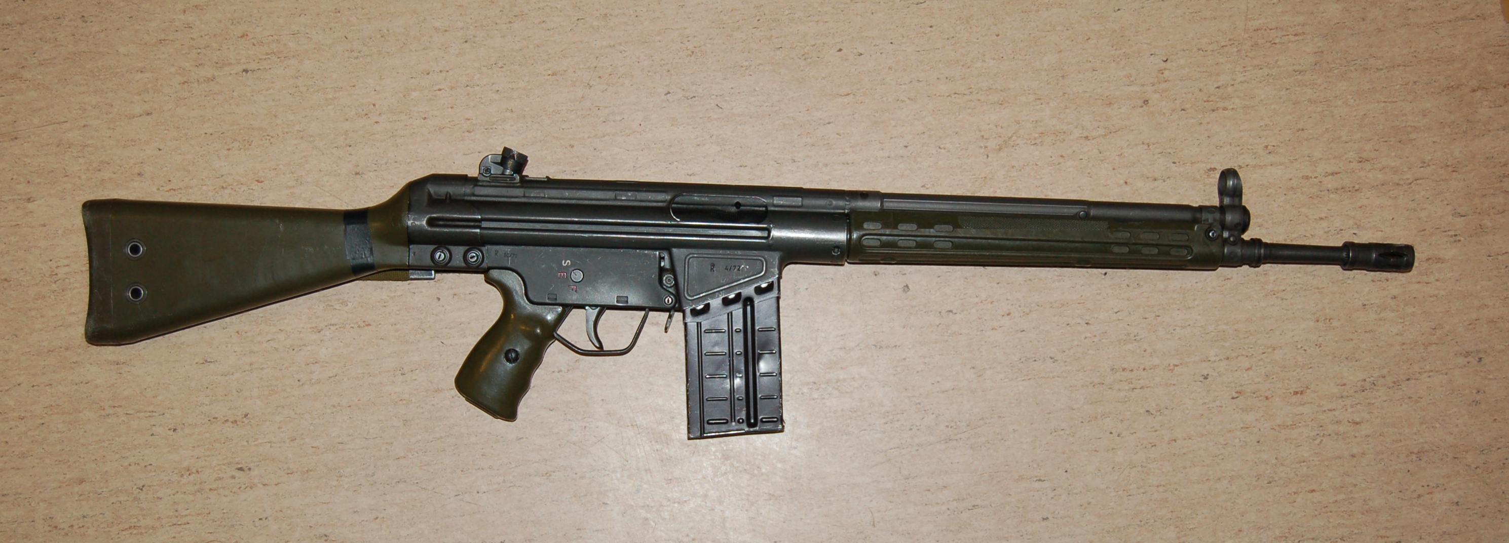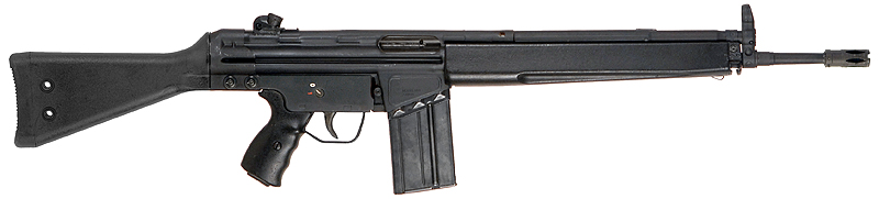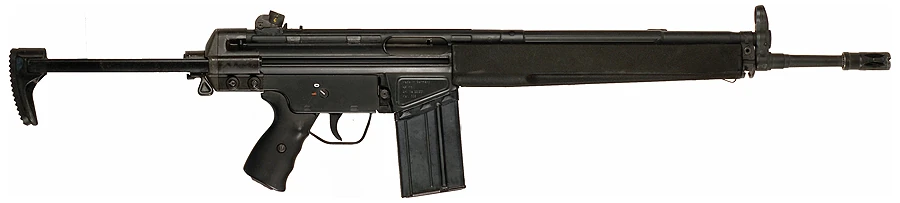The G3 rifle is a select-fire, magazine-fed, roller-delayed blowback rifle, developed by German engineers at Mauser Werke late in the 2nd World War and refined in Spain, at the CETME company.