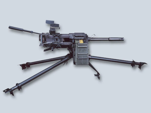 The feed on it uses NATO-standard disintegrating belts from either side, which can easily be set up and can be mounted on a special tripod or on the U.S. M3 tripod through a proprietary softmount that includes spade grips and additional trigger, shoulder rod, and sight mounts.