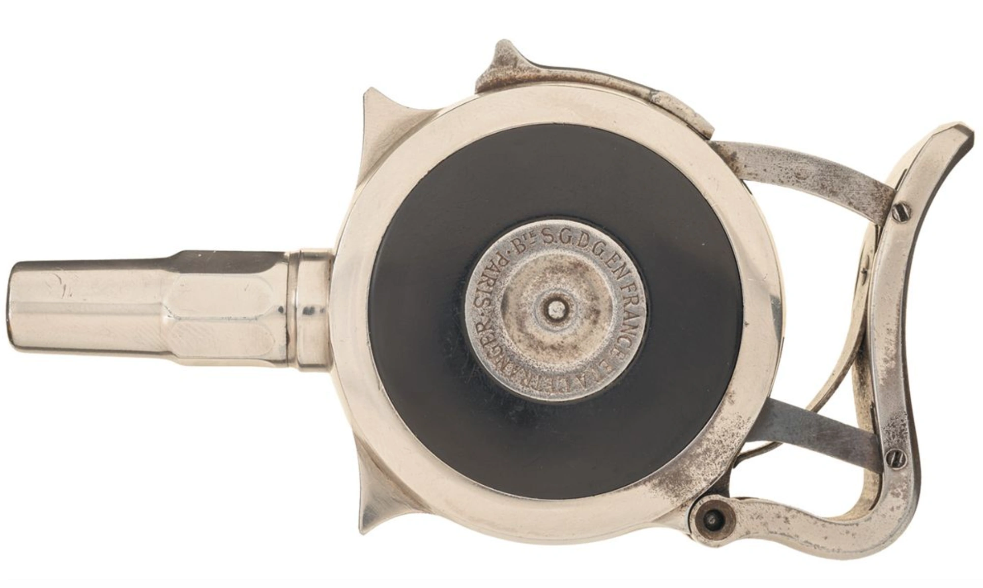 The palm pistol was developed in the early 1880s by Jacques Edmond Turbiaux as a means of self-defense which could be easily concealed in the palm of the hand. The first pistol of this type, the Turbiaux Protector, entered production in 1882. A number of similar designs would follow suit, including ones by Etablissements Rouchouse & Cie and Manufacture Française d’Armes de Saint-Étienne.[1]