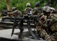 While there have been attempts to produce small man-portable rotary weapons chambered for intermediate cartridges, such as the XM214 "Six Pak" Microgun, none have ever been adopted by any military due to a lack of perceived need for such a high volume of fire in an infantry weapon.