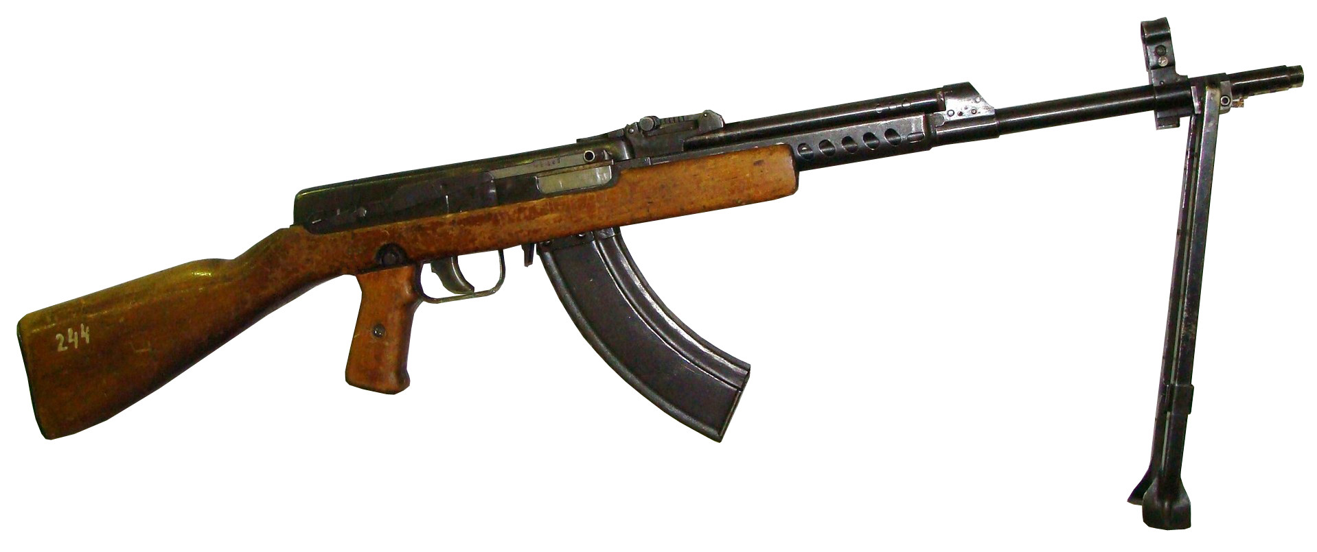 The AS-44 was an assault rifle developed by Alexey Sudayev in 1944. It was produced in very limited numbers, and was used on the Russian frontlines with success. They were determined to be reliable weapons during testing, but were not as accurate as the then-currently used Mosin-Nagant. His design showed promise, but Sudayev had fallen very ill by 1945, and passed away the next year, effectively halting all development of said weapon.