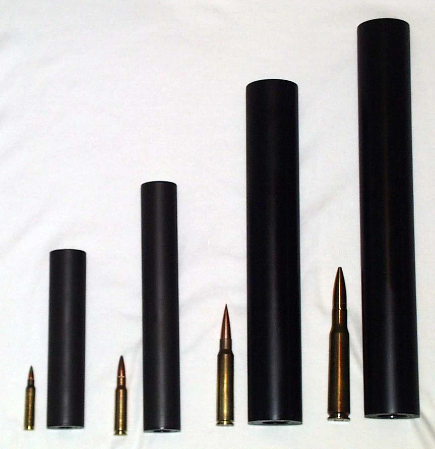Suppressors, often referred to erroneously as silencers, are medium-sized tubes filled with sound-dissipating material that are screwed onto the end of the barrel of a firearm, which aids in sound reduction.