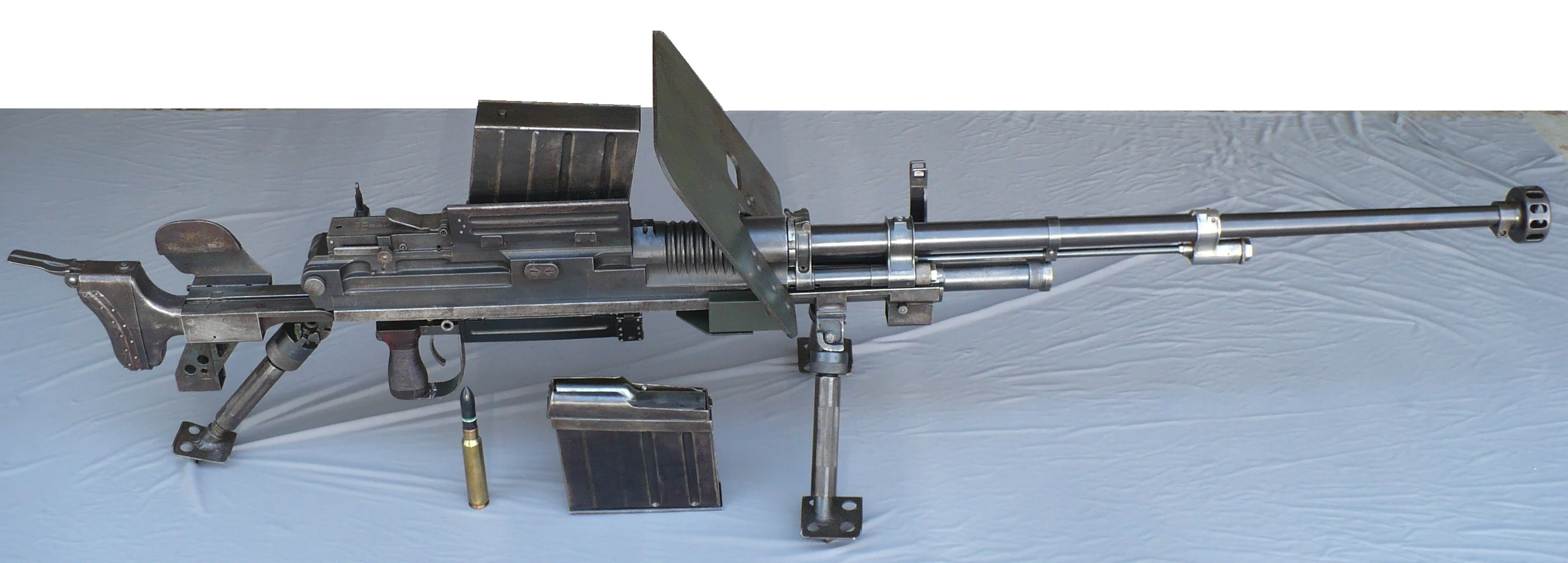 The Type 97 anti-tank rifle was developed in response to a commission from the Japanese Army Engineering Division in 1935. It was designed at Kokura Arsenal and was trialed against a rival 13mm design from Nagoya Arsenal in March 1936, with a Steyr-Solothurn S18-100 being used as a test control. The initial trials were inconclusive, so further trials were arranged for 1937 and the Type 97 won out, predominantly on account of its 20mm chambering. Kokura Arsenal were granted a budget to improve the rifle, with minor modifications being made to the build quality of the weapon, including a strengthened receiver, trigger, and bipod. A pilot batch of 8 Type 97s was produced that year, and a further 50 in 1938. After final trials in December 1938, the decision was made to accept the Type 97 into full military service.
