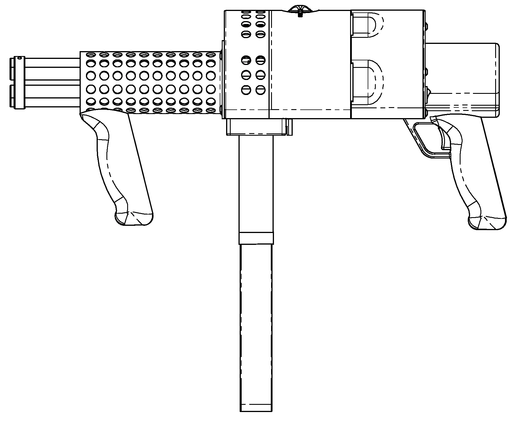 The Zinsner rotary gun is a prototype split breech rotary machine gun chambered in the .22LR round.